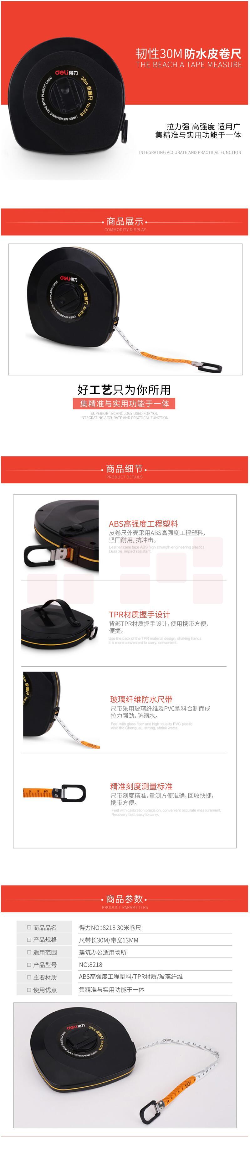 得力 30m皮卷尺操场盘式卷尺 30米皮卷尺软尺测量尺子8218