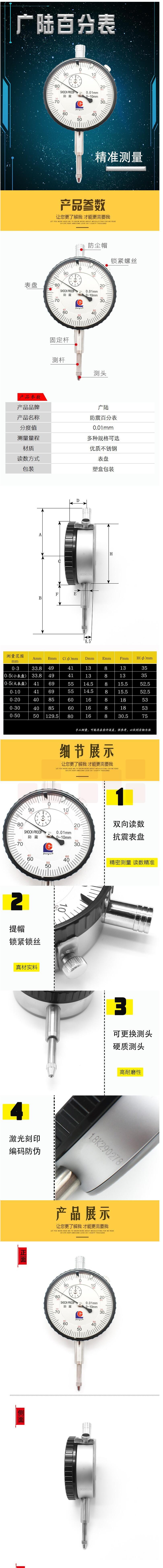 桂林 广陆机械百分表表头指针式高精度防震指示表丝表大小表盘 0-20mm
