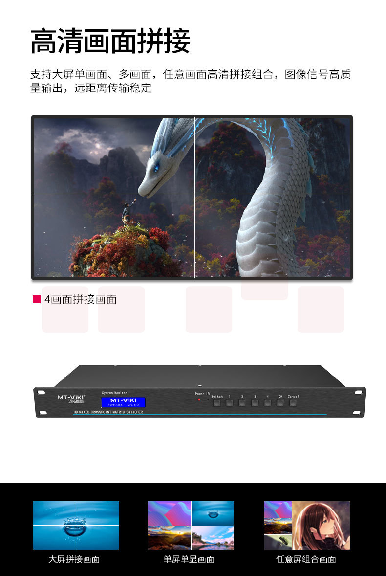 迈拓维矩(MT-viki) DV0404 DVI矩阵切换器4进4出视频会议主机服务器高清信号分配器