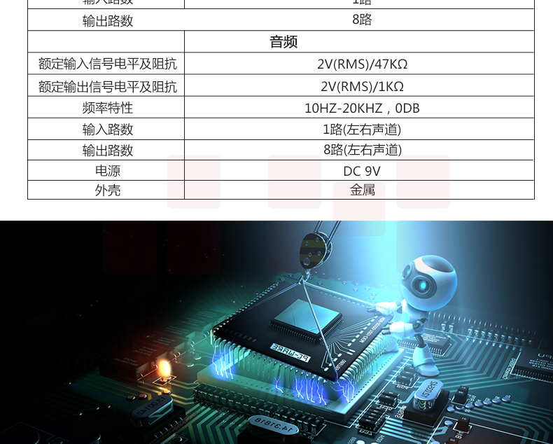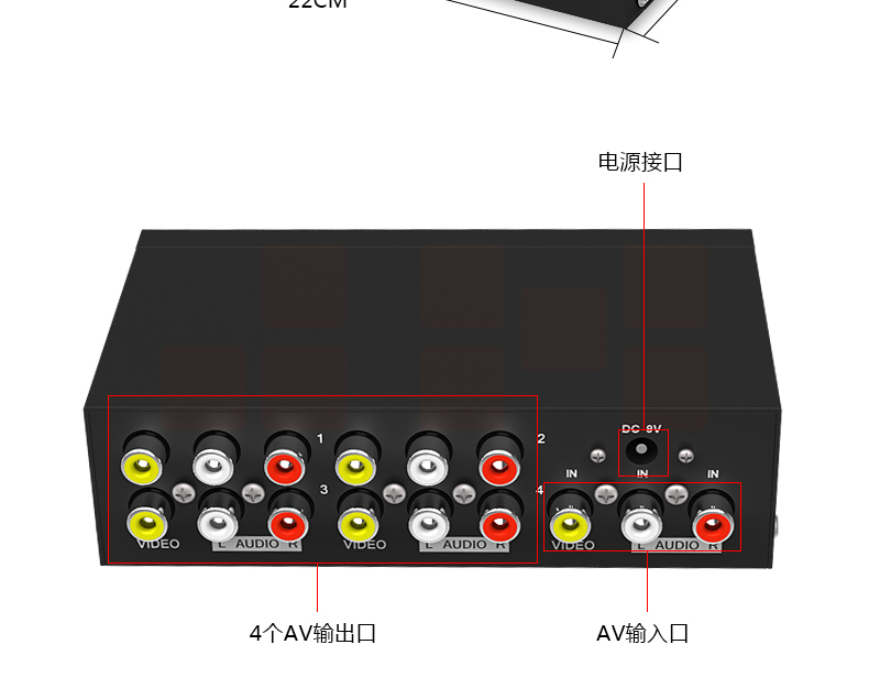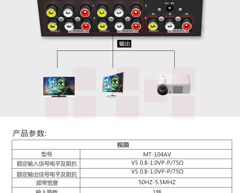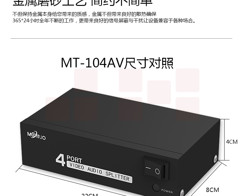 迈拓维矩MT-104AV av分配器1进4出rca分配器一分四音视频信号分配器