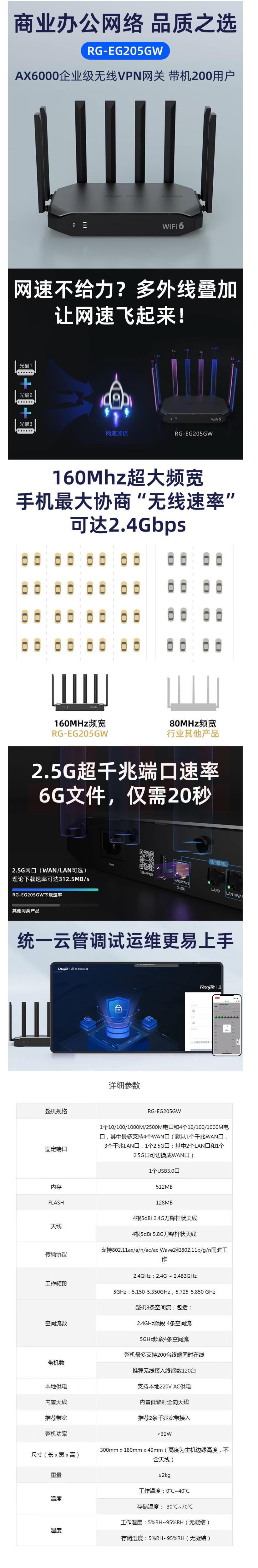 锐捷 RG-EG205GW 2.5G桌面型5口千兆网关路由器 WIFI6企业级千兆无线路由器 双频6000M
