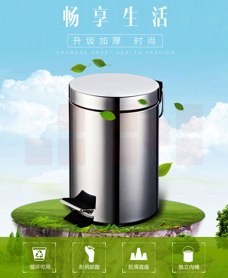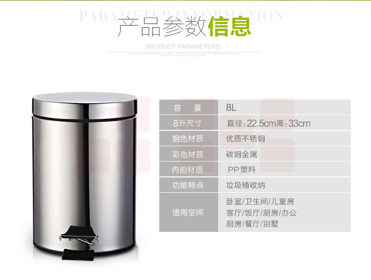 晟星运 不锈钢脚踏垃圾桶 8L