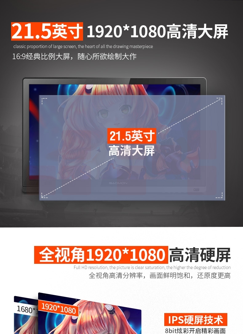 高漫 GM220HD 数位屏手绘屏绘图屏绘画屏手写屏 液晶数位板电脑手绘板