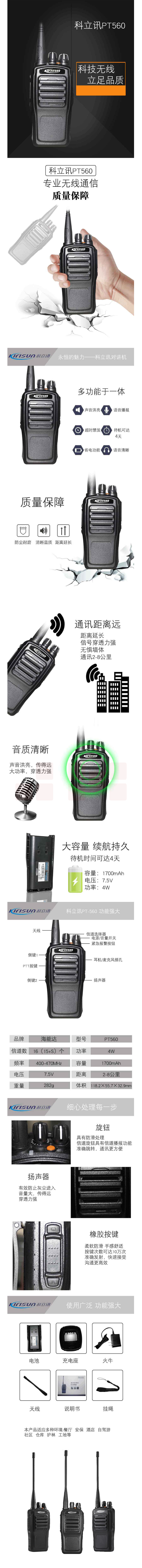 科立讯 kirisun PT560 手持对讲 商用民用大功率专业通讯手台