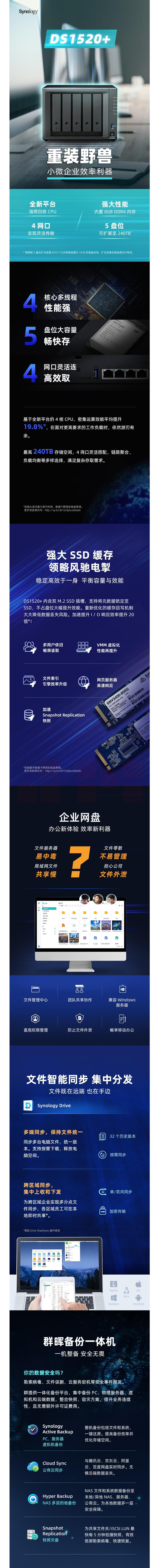 群晖( Synology) DS1520+搭配3块希捷 4TB酷狼IronWolf ST4000VN008 硬盘套装