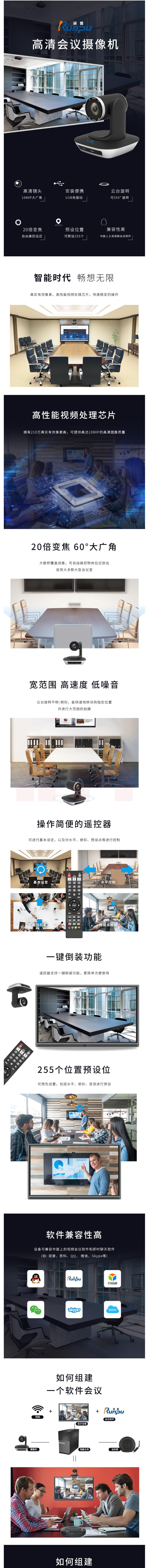 润普(Runpu) RP-V20-1080H高清视频会议摄像头HDMI/USB接口 20倍变焦 教育录播摄像机/软件系统终端