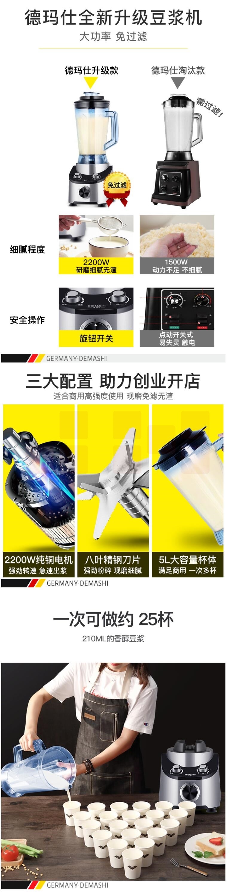 德玛仕(DEMASHI)DMS-2200 现磨豆浆机 5L破壁机 货号:JC