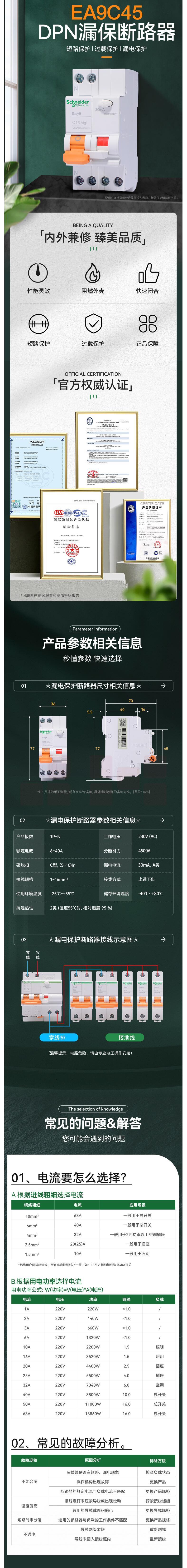 施耐德 1P+N C20A 带漏电保护断路器A型空气开关带漏保