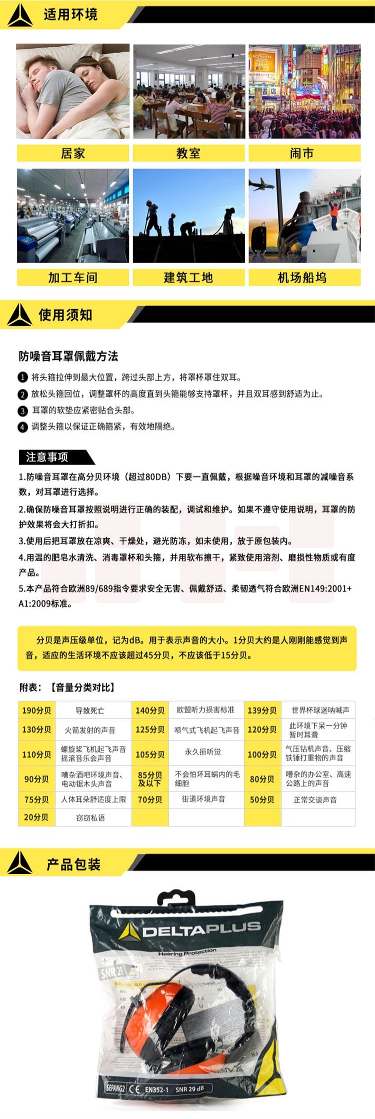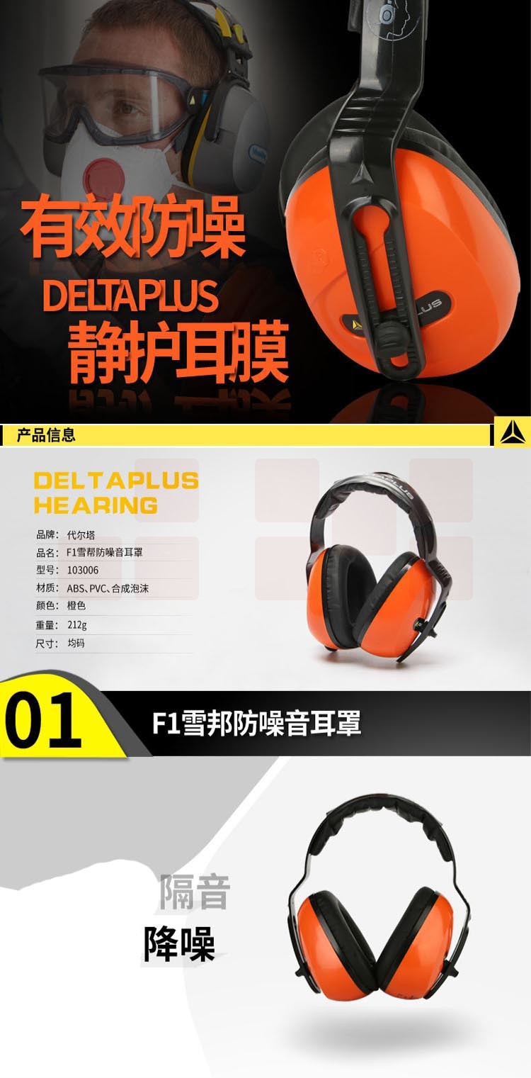 代尔塔 103006 耳罩专业隔音耳罩睡觉 防噪音睡眠工厂学习降噪耳罩