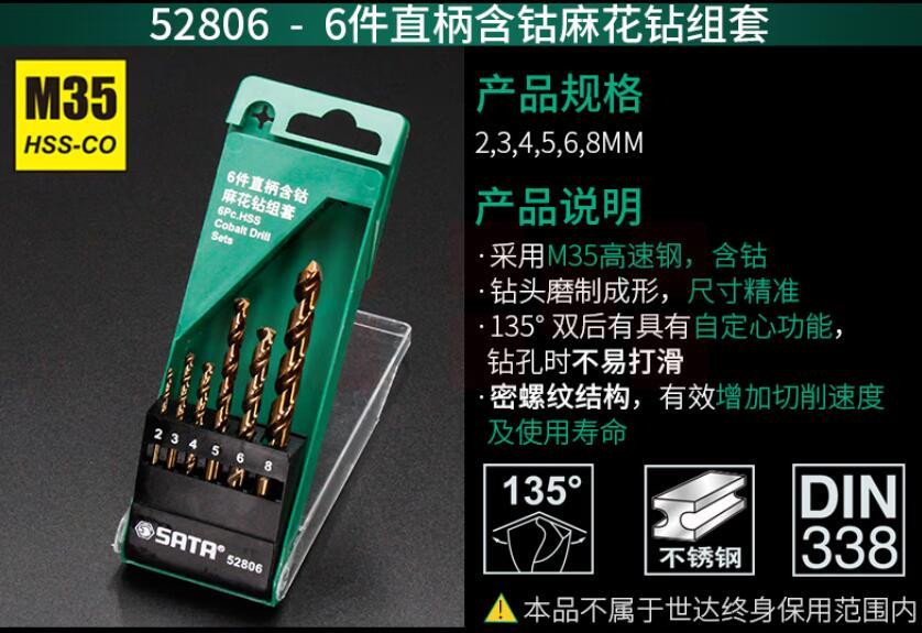 世达(SATA)6件套直柄含钴麻花钻 52806