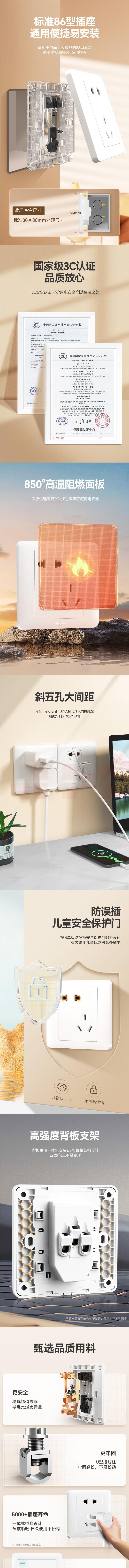 德力西 五孔插座 86墙壁插座10A 10只/盒