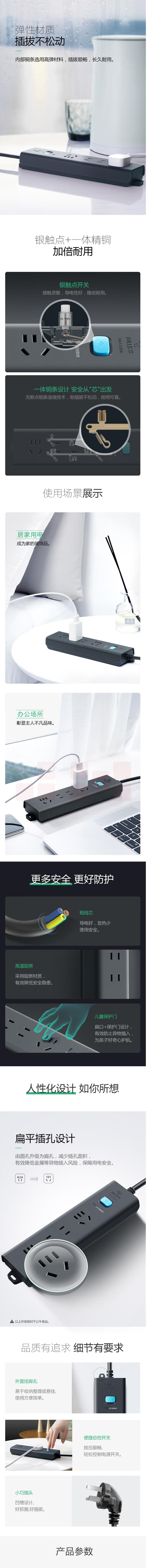 公牛 GN-H5220 4位总控全长1.8米 防雷插座/插线板/插排/排插/接线板/拖线板