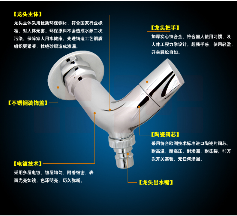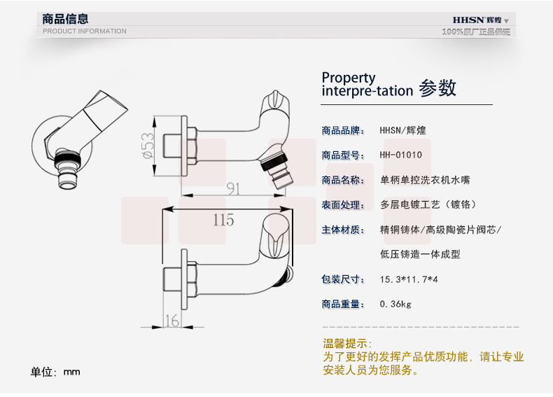 HHSN 辉煌卫浴全铜快开拖把池洗衣机四分水龙头弯勾设计 HH01010