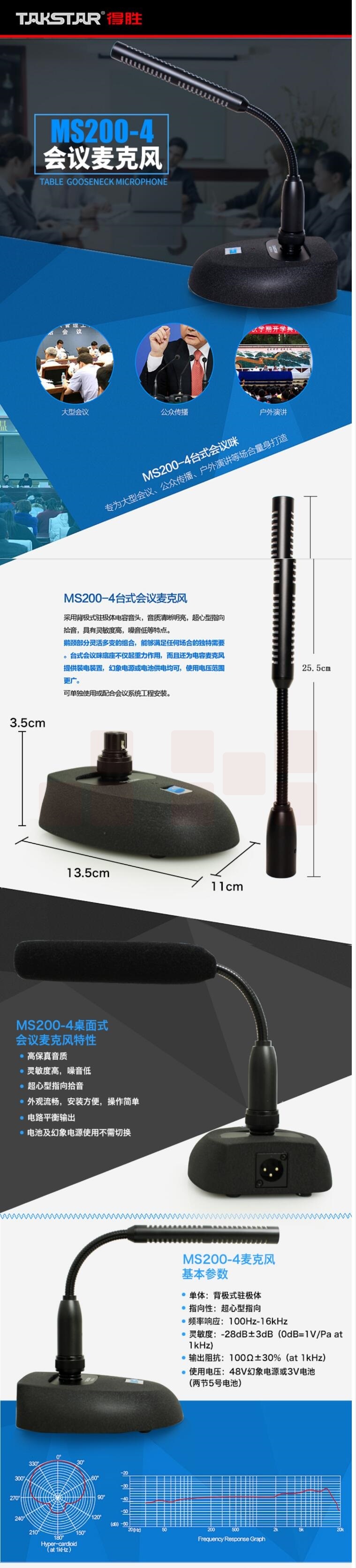 得胜 MS200-4 会议话筒有线台式麦克风 不含幻象电源