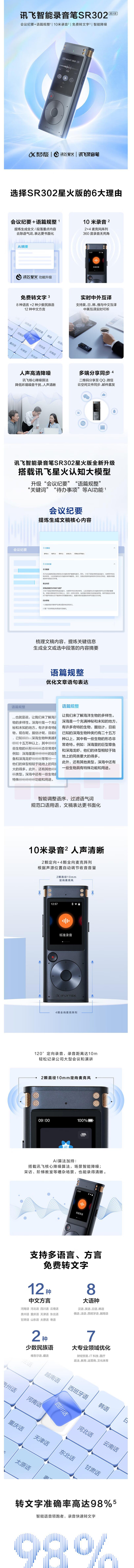 科大讯飞 SR302星火版 32G+10G内存 录音转文字