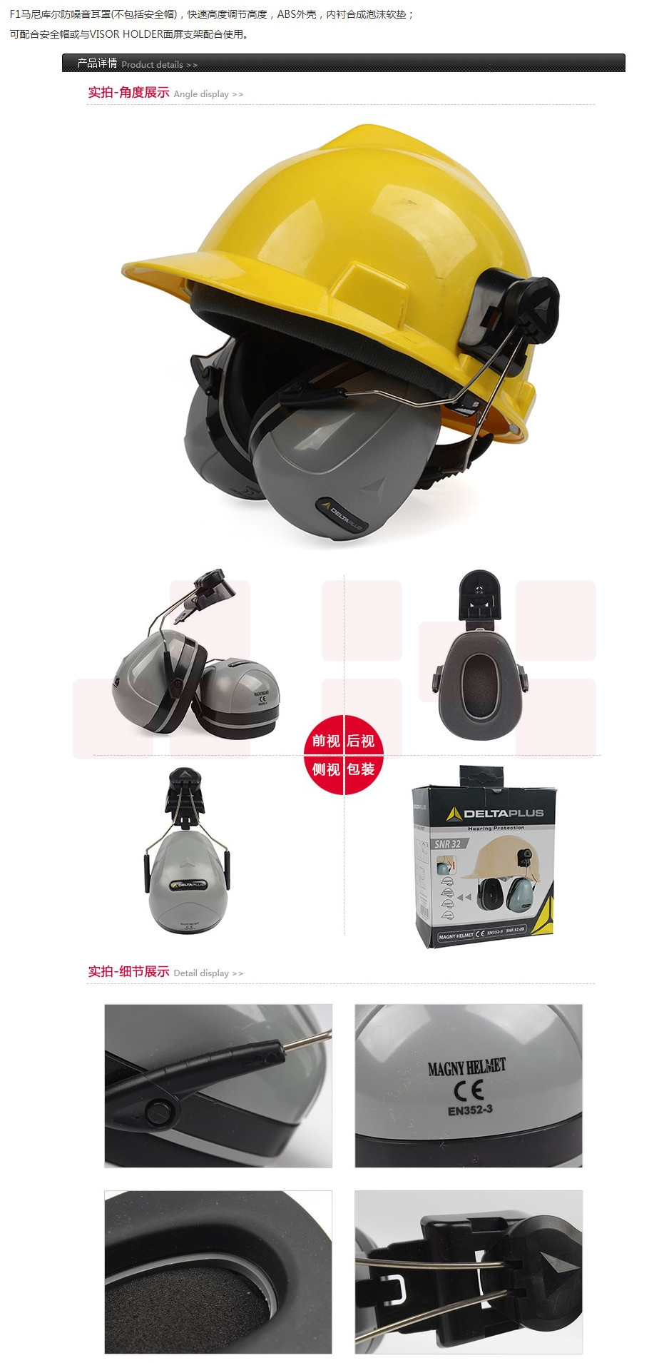 代尔塔 103014 F1马尼库尔安全帽耳罩 MAGNY HELMET 灰色 20个/箱 耳部防护