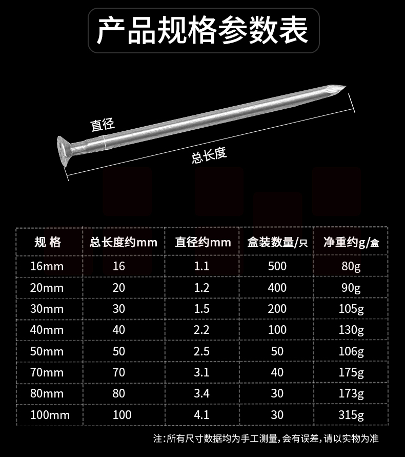 火豹(HB)净重园钉 2.5*50[火豹] 20公斤/件 1公斤/包