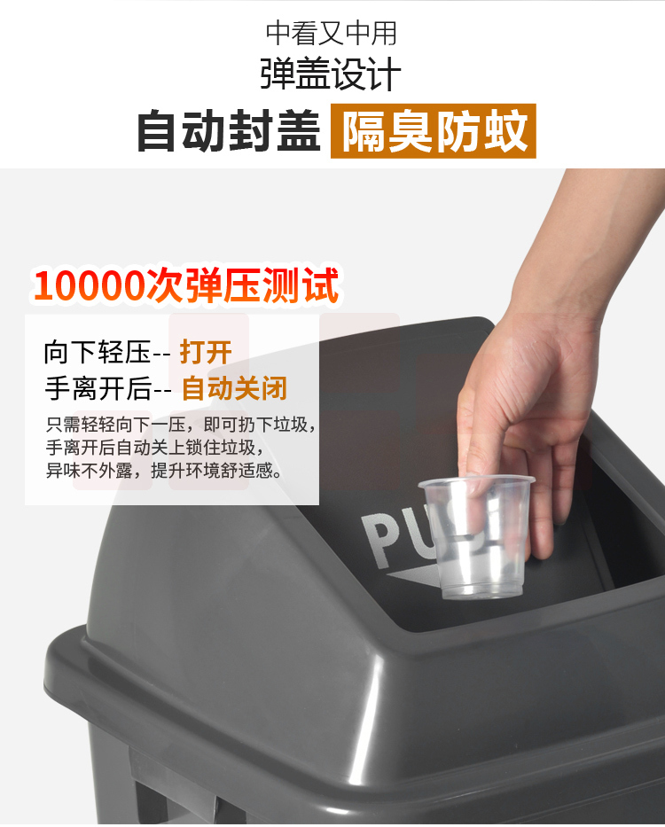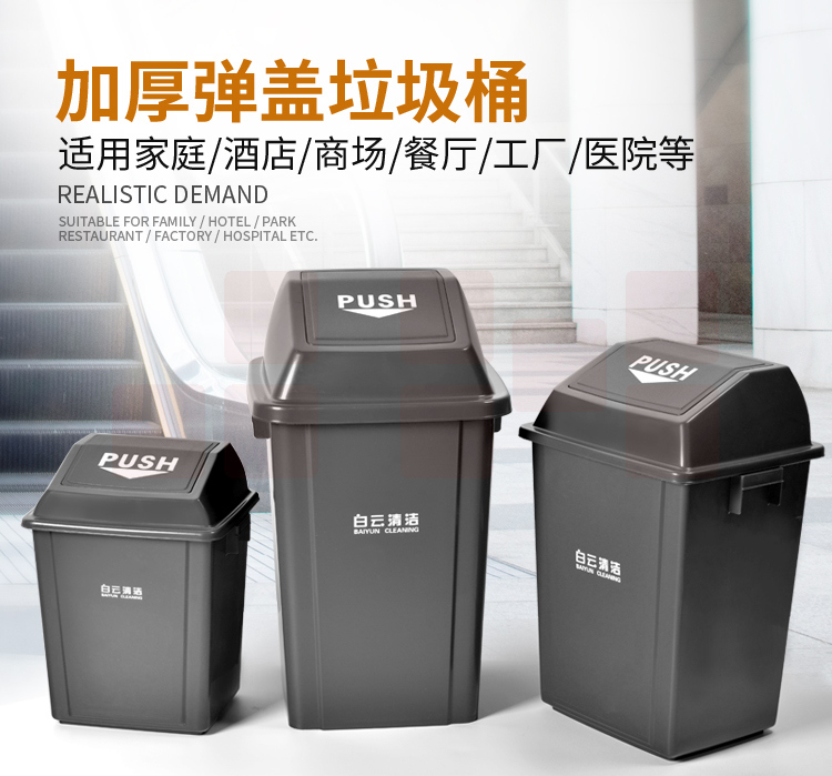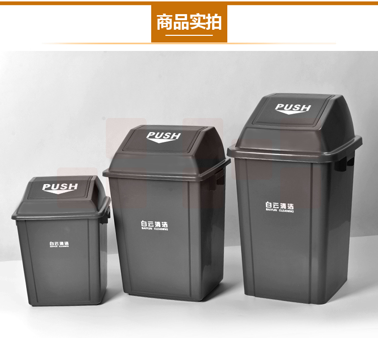 白云清洁 60升方形垃圾桶 灰色07312 带盖:410*410*700mm