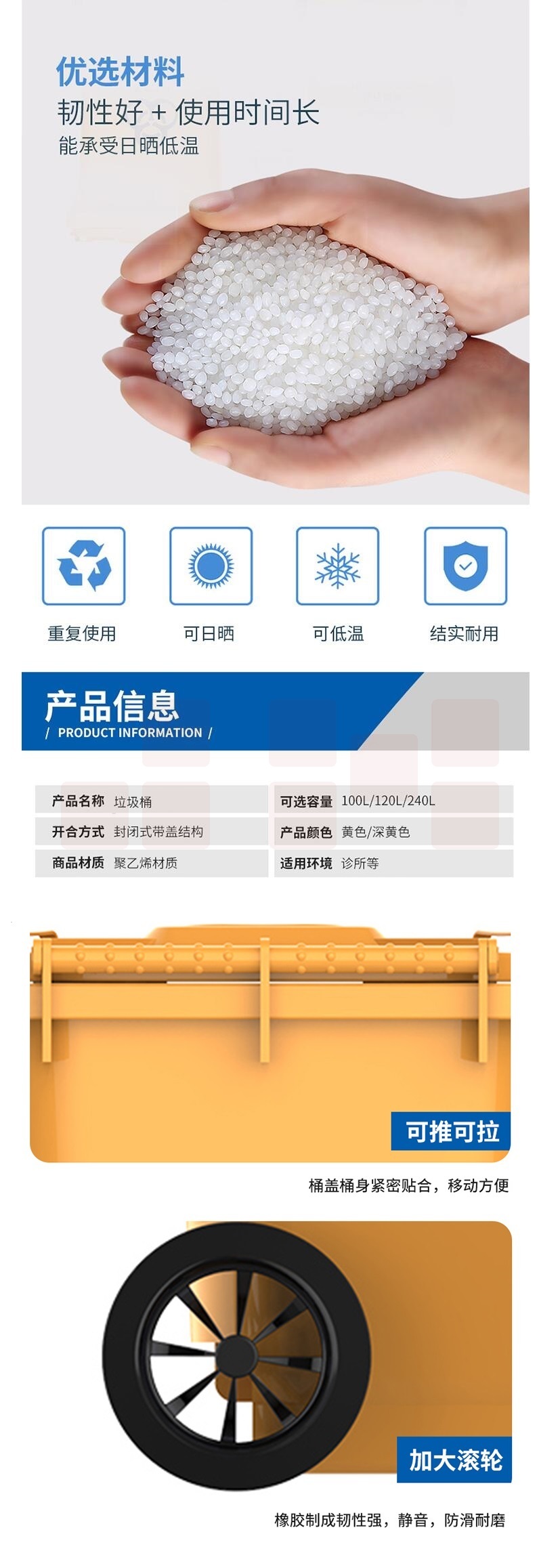 黄色垃圾桶 大号塑料环卫户外垃圾桶加厚带盖100L带轮翻盖垃圾桶