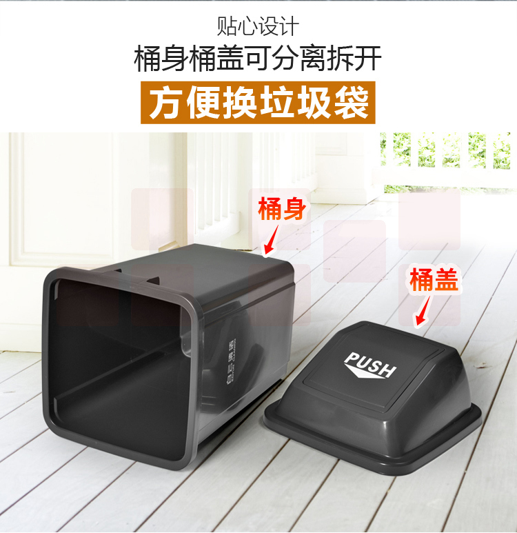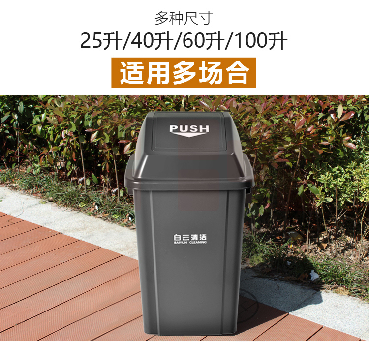 白云 100L方形弹盖垃圾桶 (灰)
