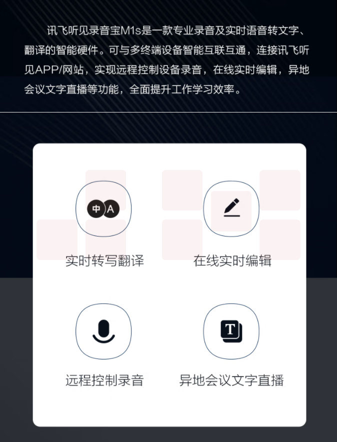 科大讯飞智能录音笔讯飞听见M1S转写助手 远距高清无损专业录音器 配套APP语音转文字