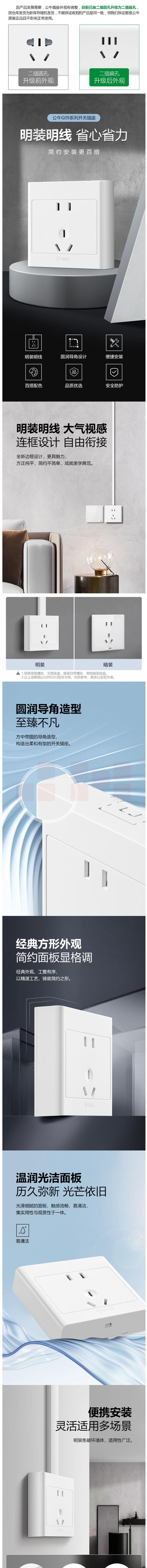 公牛 明装五孔插座86型10A面板插座 G09Z223