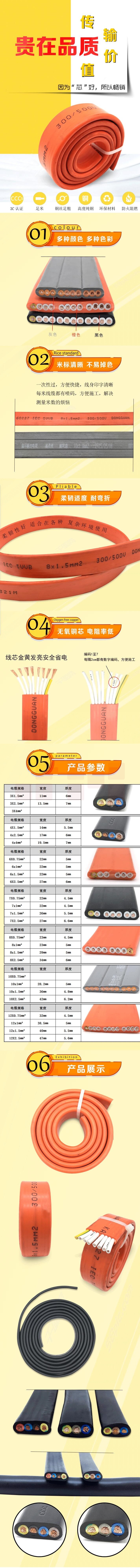 行车扁平电缆TVVB/YFFB 3*1平米电动门伸缩门柔软专用扁线 20米/盘