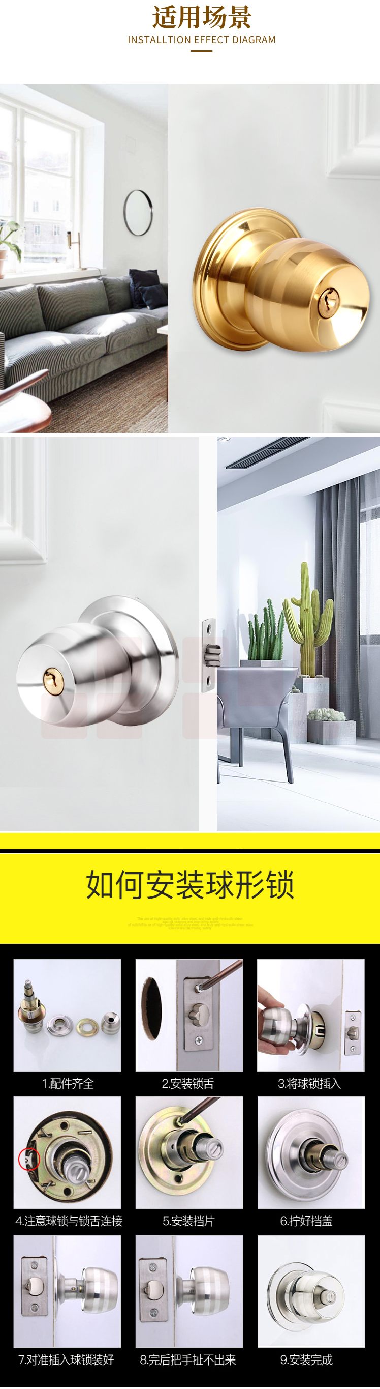 伟邦 5831铜双环 球型门锁