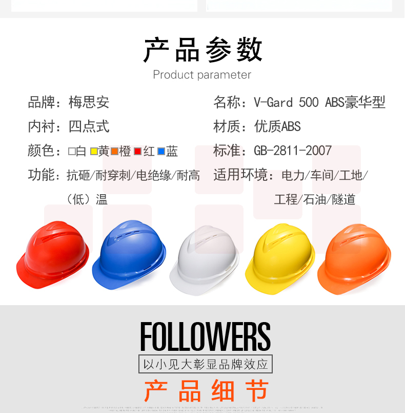 梅思安 V-Gard500 PE 豪华型 安全帽(红色)10146614