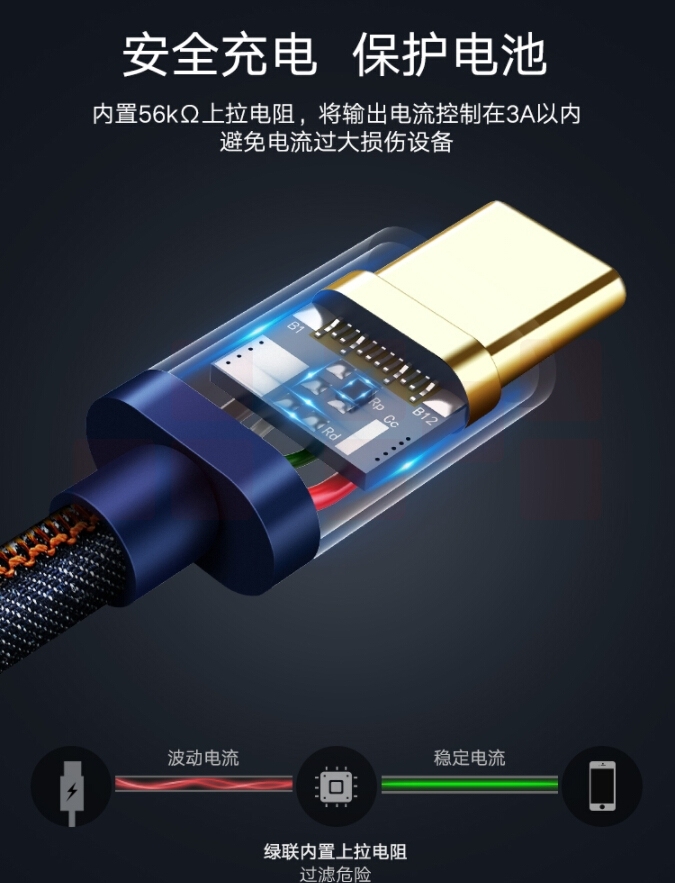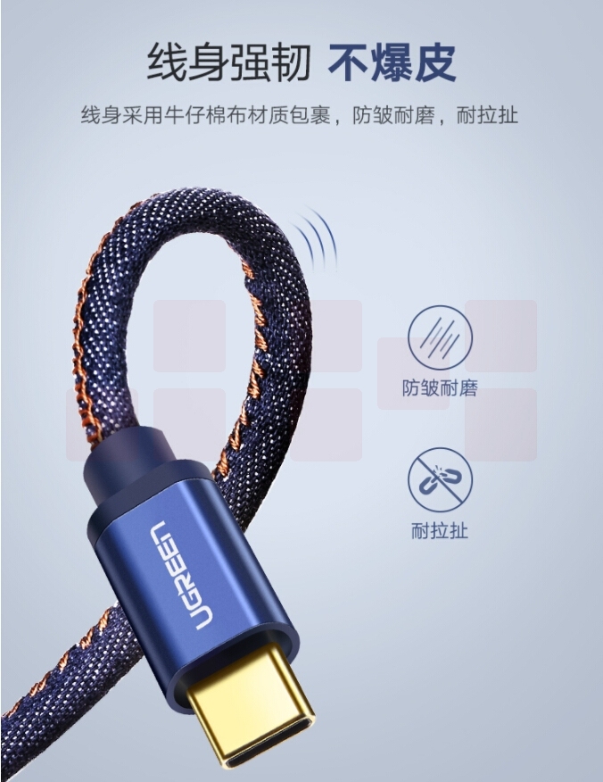 绿联 Type-C数据线 快充充电线 安卓USB-C转接头充电器电源线通用华为P20/Mate20荣耀小米手机1.5米40345深蓝