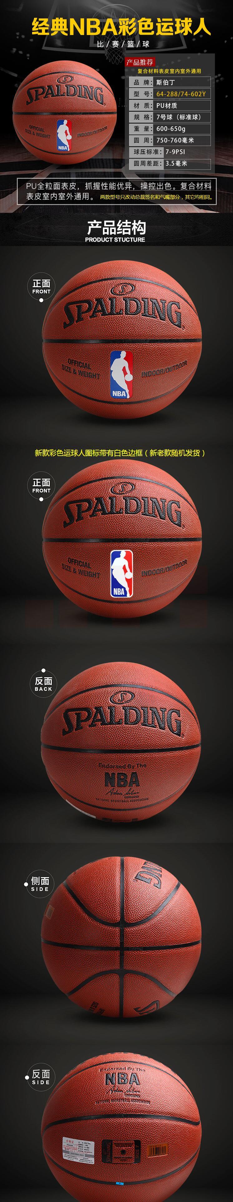 斯伯丁 74-602篮球 NBA彩色运球人经典比赛PU蓝球