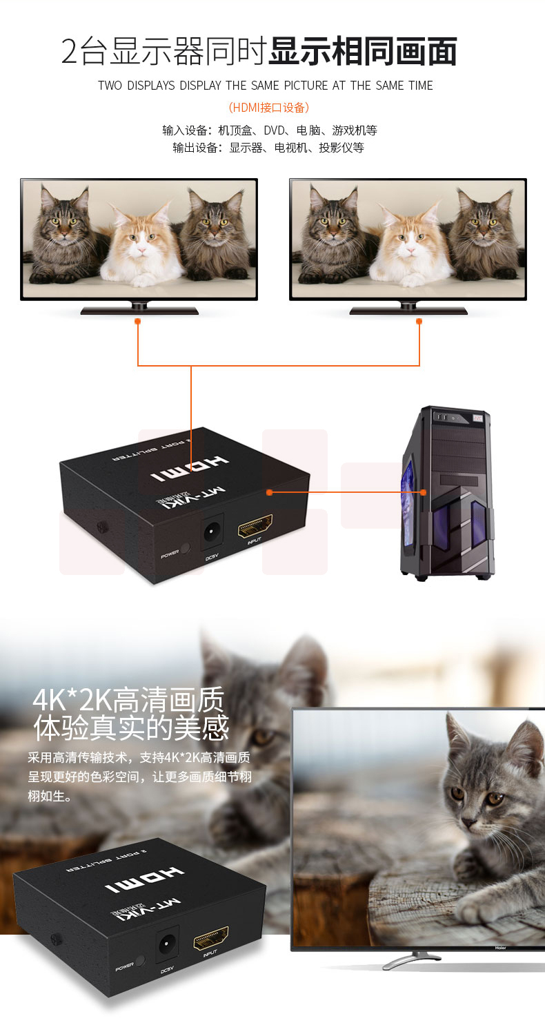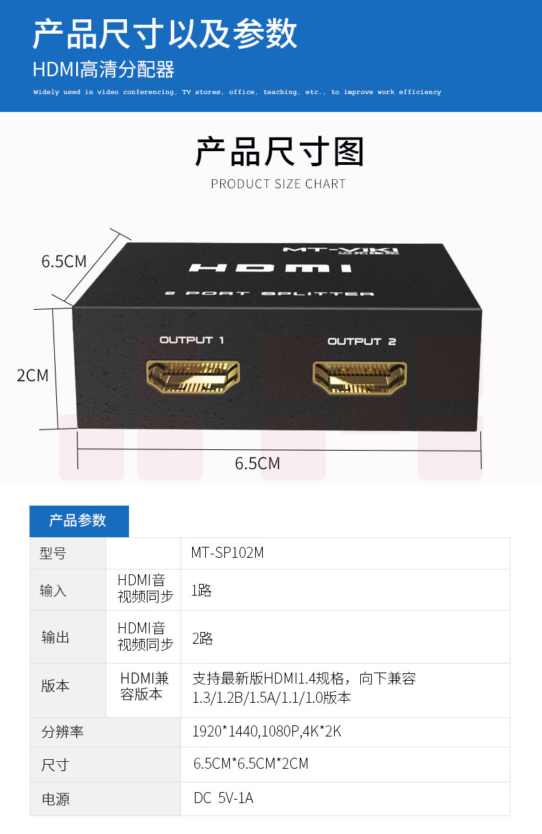 迈拓维矩MT-SP102M hdmi分配器1进2出3D高清音视频一分二分支分频器