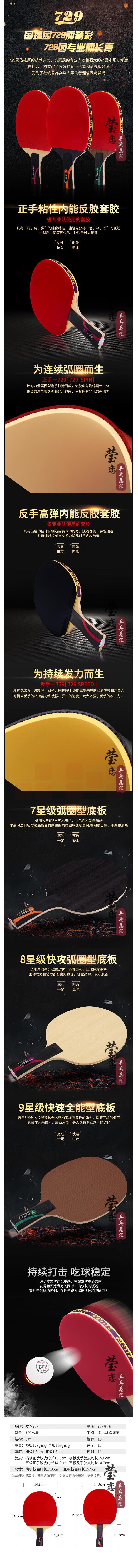 莹恋 7星乒乓球拍 友谊729 横拍 单拍 货号:JC