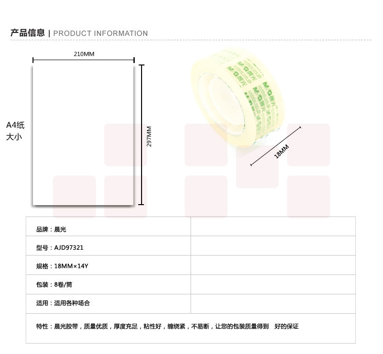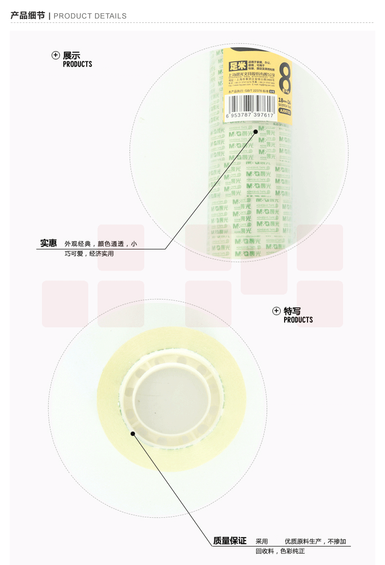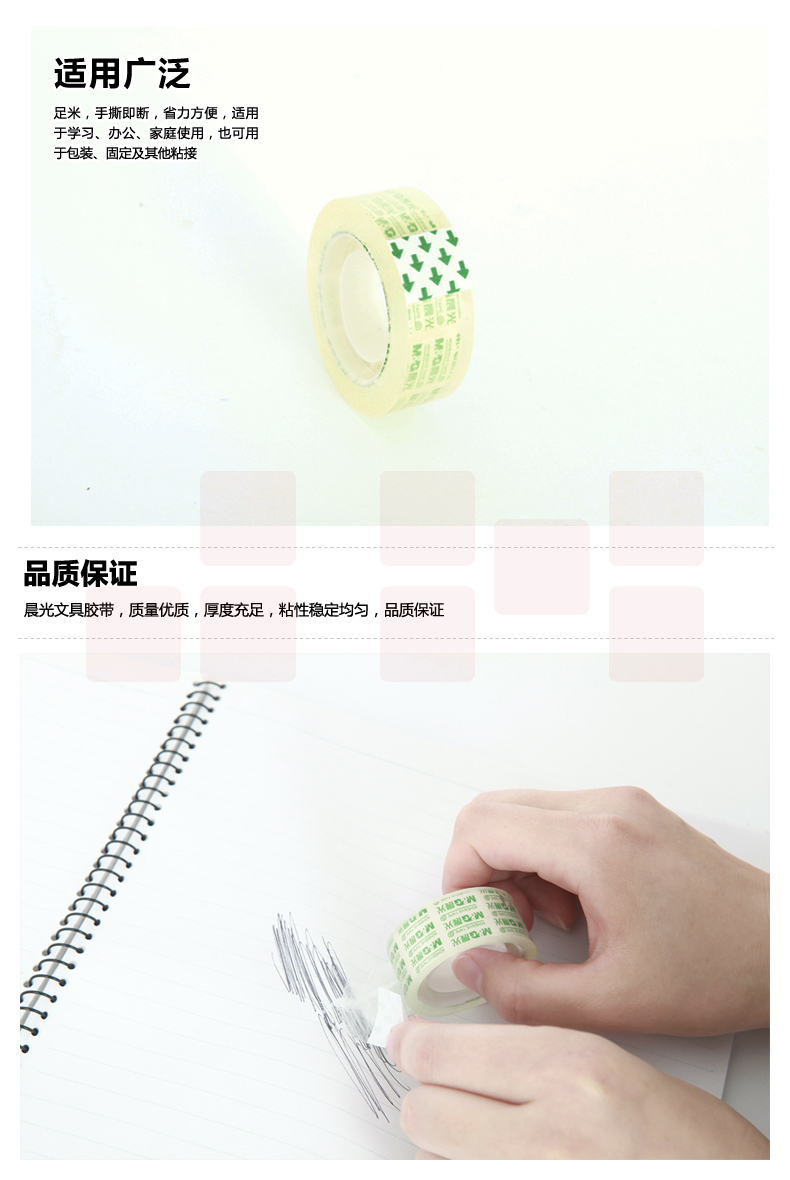 晨光(M&G)文具胶带18mm*14Y 学生透明胶带 办公用品AJD97321 一包8卷