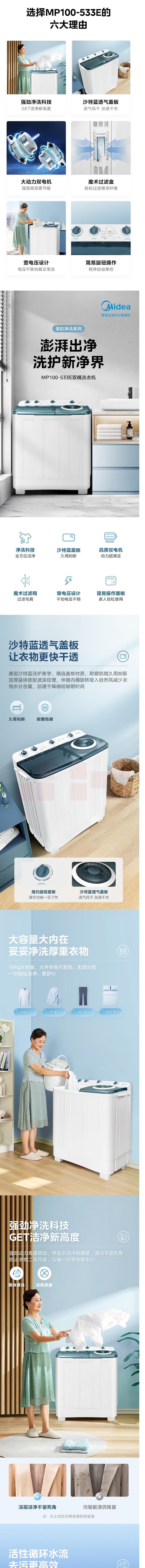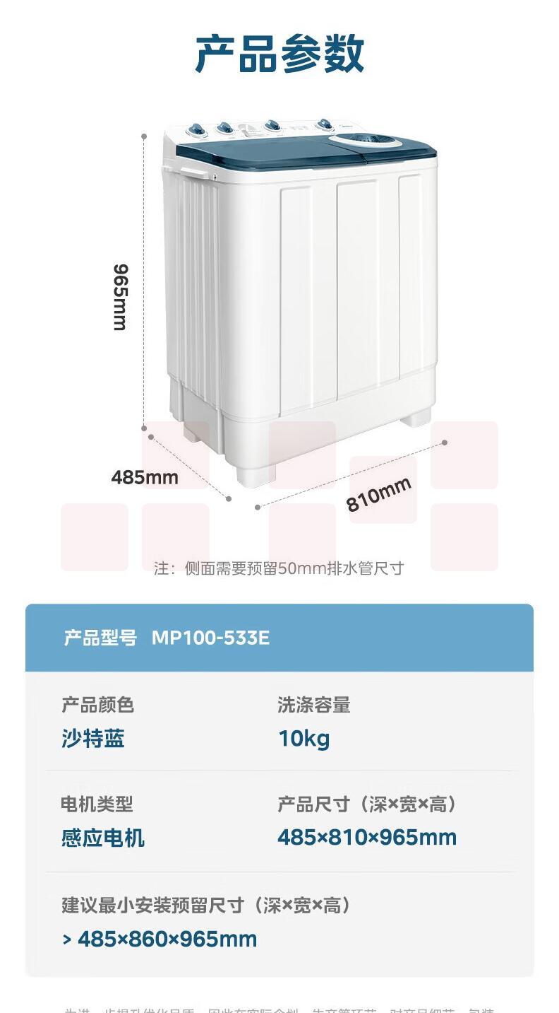 美的 10KG公斤半自动双桶双缸洗衣机 MP100-533E