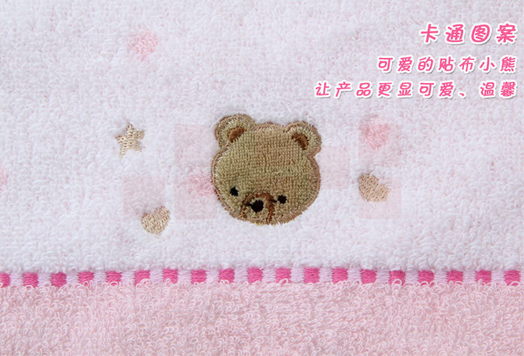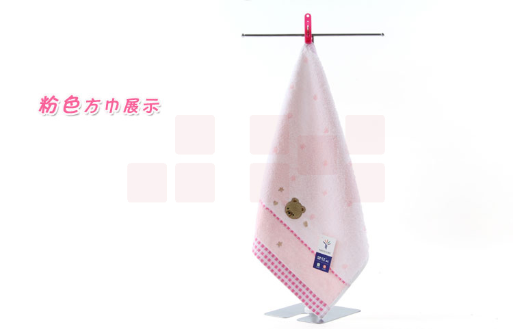 金号 ( KINGSHORE ) 毛巾家纺 纯棉 3666 小熊卡通无捻方巾兰粉 2条装