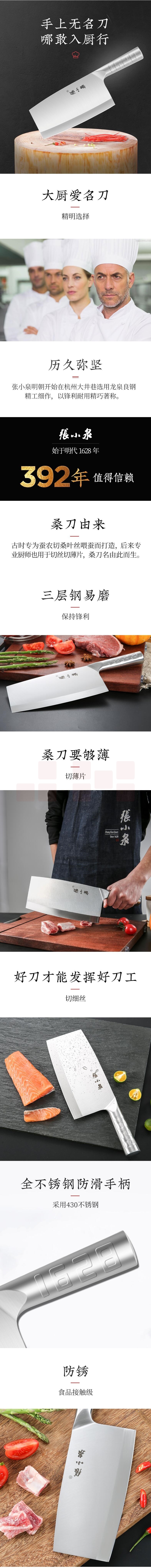 张小泉菜刀 厨房刀 家用厨师桑刀 切片刀 斩切刀 不锈钢菜刀 货号:JC