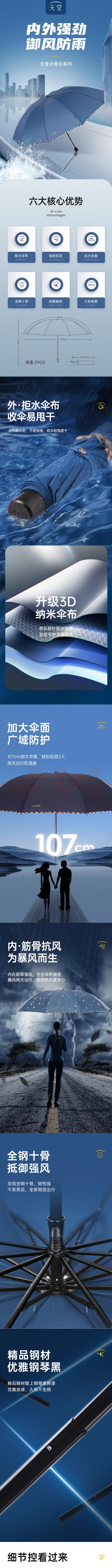 天堂伞 30721E 三折叠晴雨两用便携商务伞 61CM*10骨 藏青