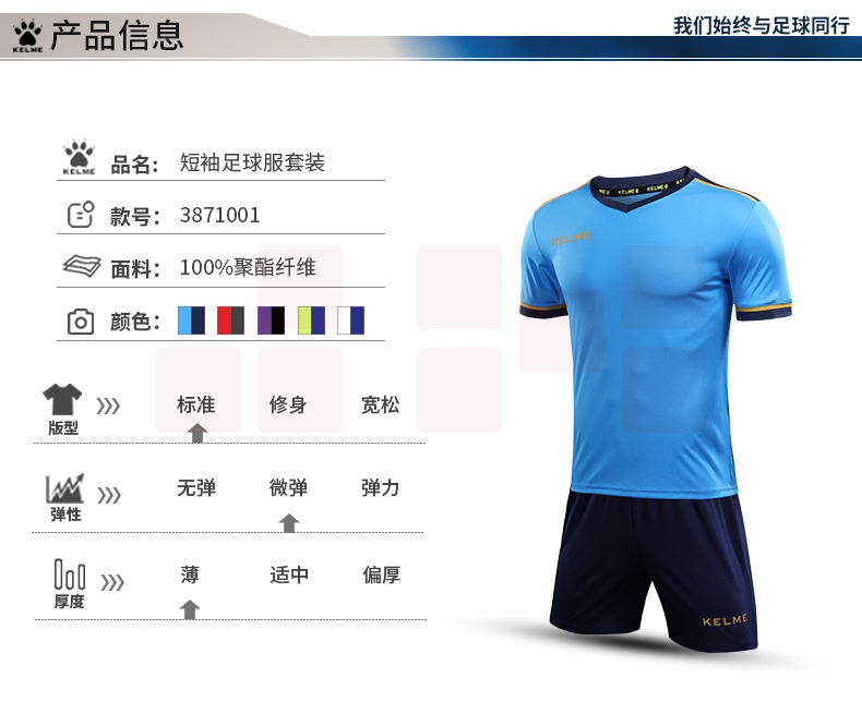 卡尔美足球服套装男组队短袖球衣比赛服 3871001-2 2套/组