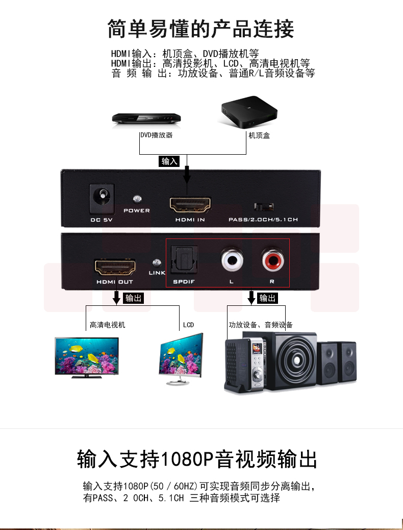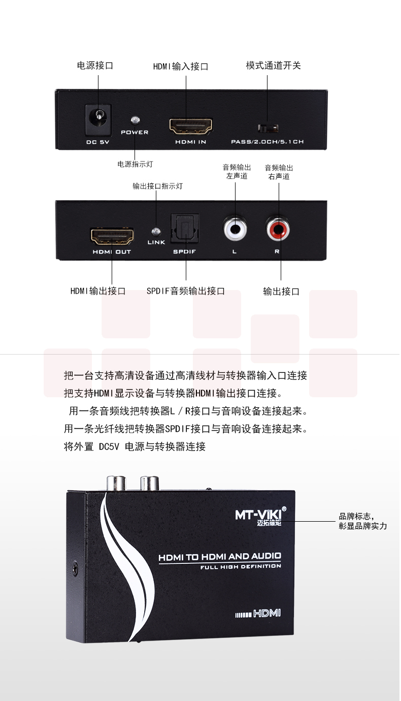 迈拓维矩MT-HA12 hdmi音频分离器5.1环绕音频高清视频监控电脑转换器