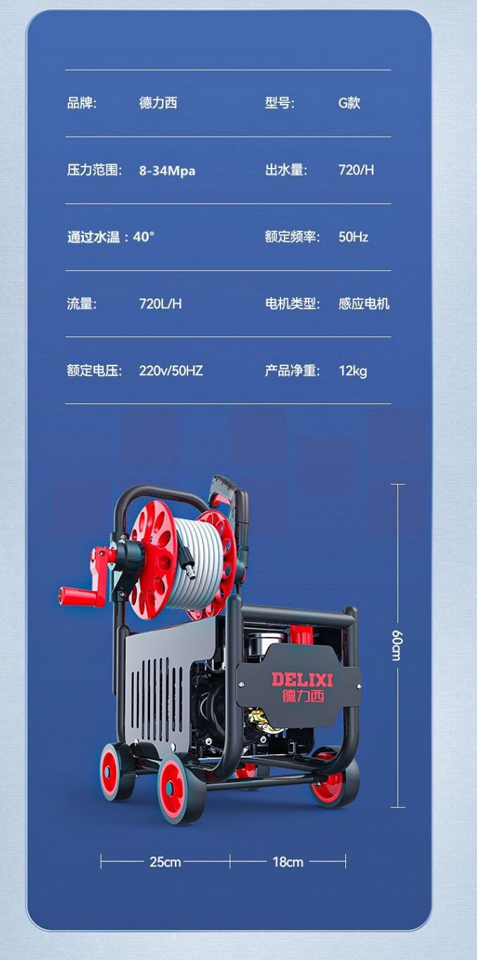 德力西 洗车机 220V高压水泵大功率水枪车 强力洗地抢 28米进出水管 货号:JC