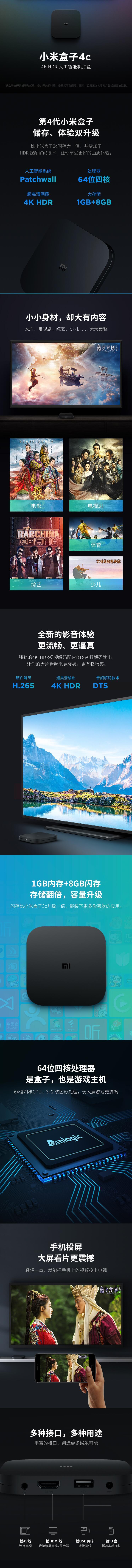 小米盒子4C 智能网络机顶盒 高清网络播放器