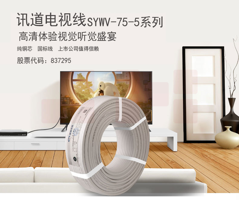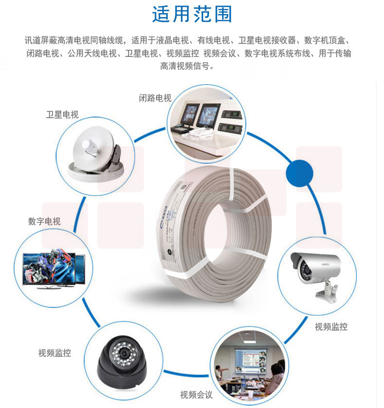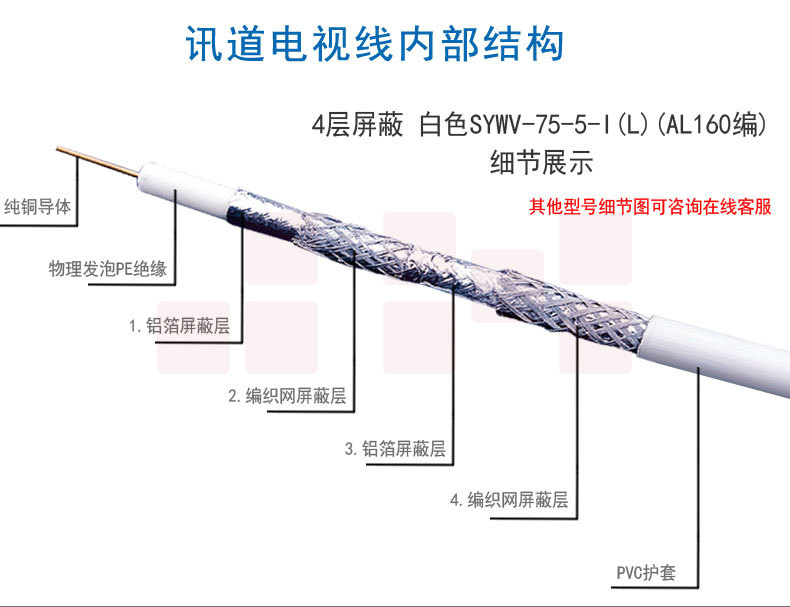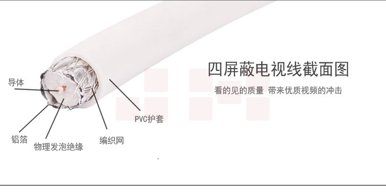 讯道SYWV-75-5视频线有线电视线四屏蔽高清数字电视闭路线100米