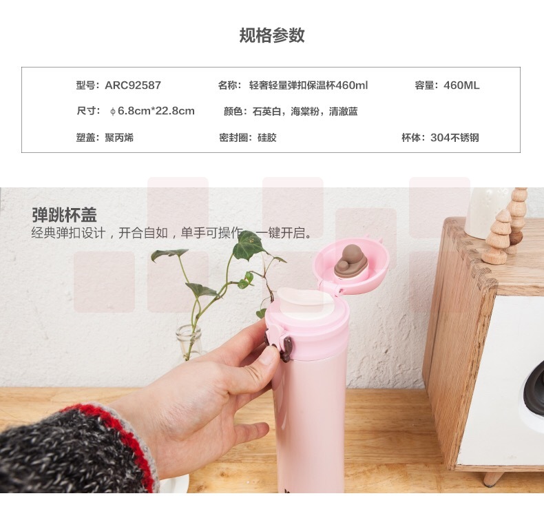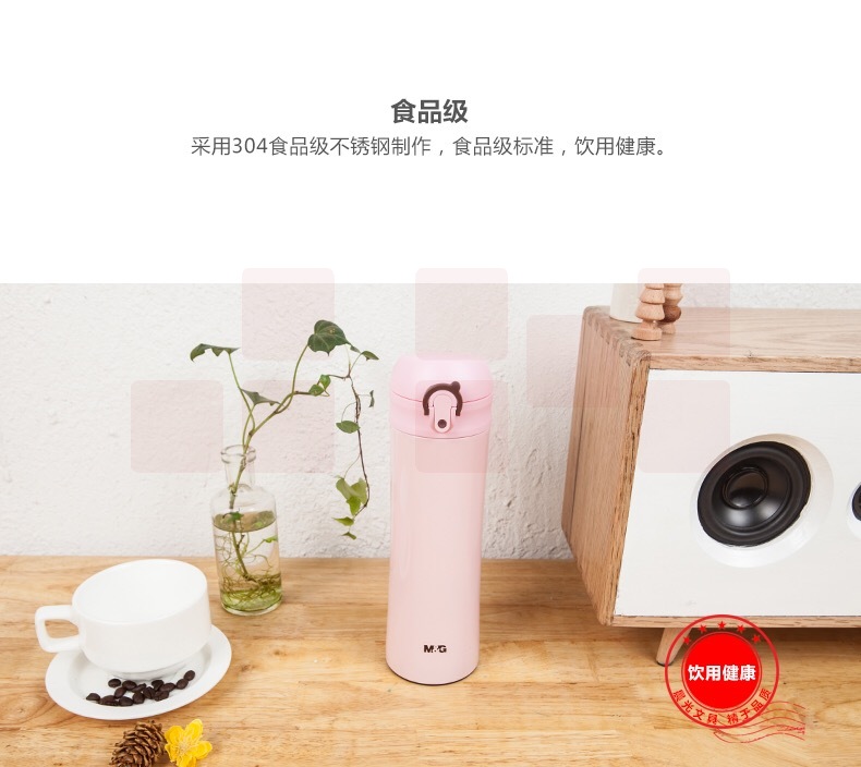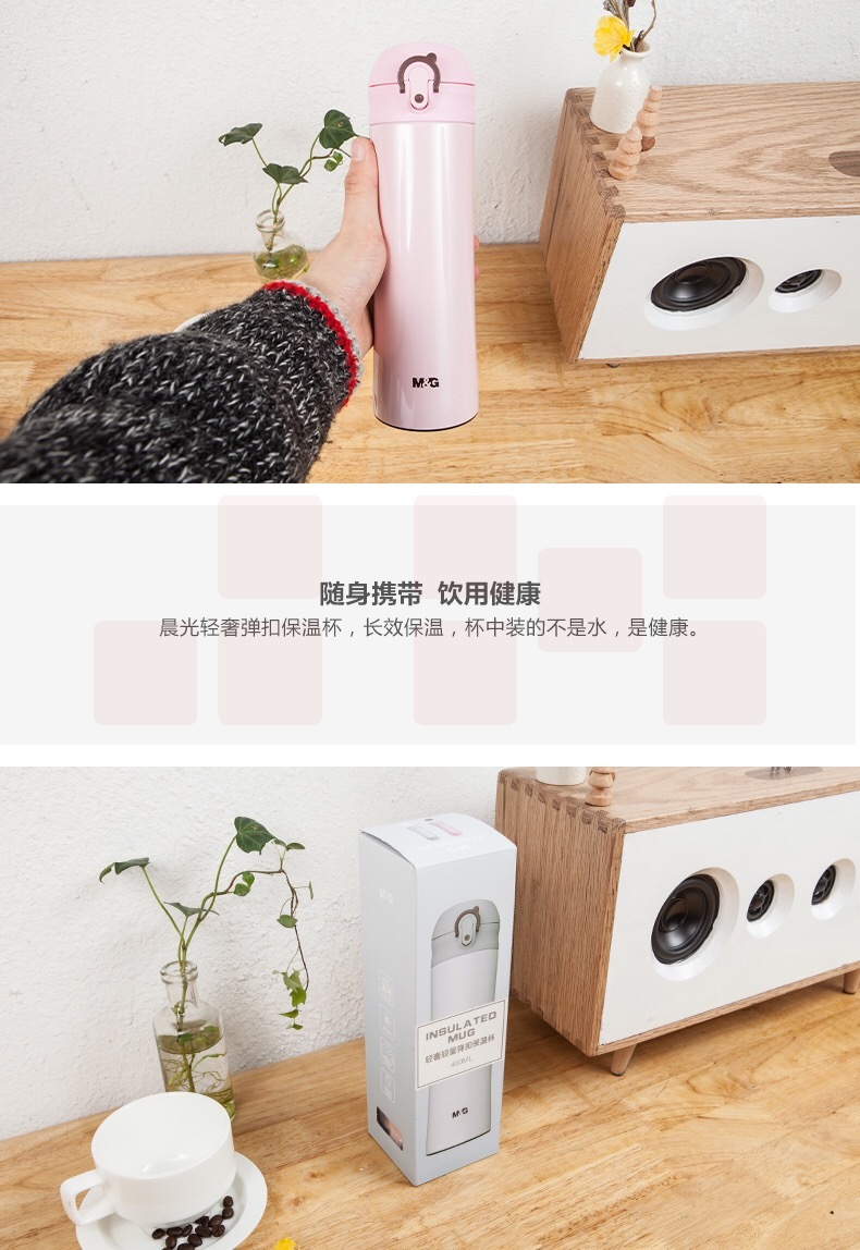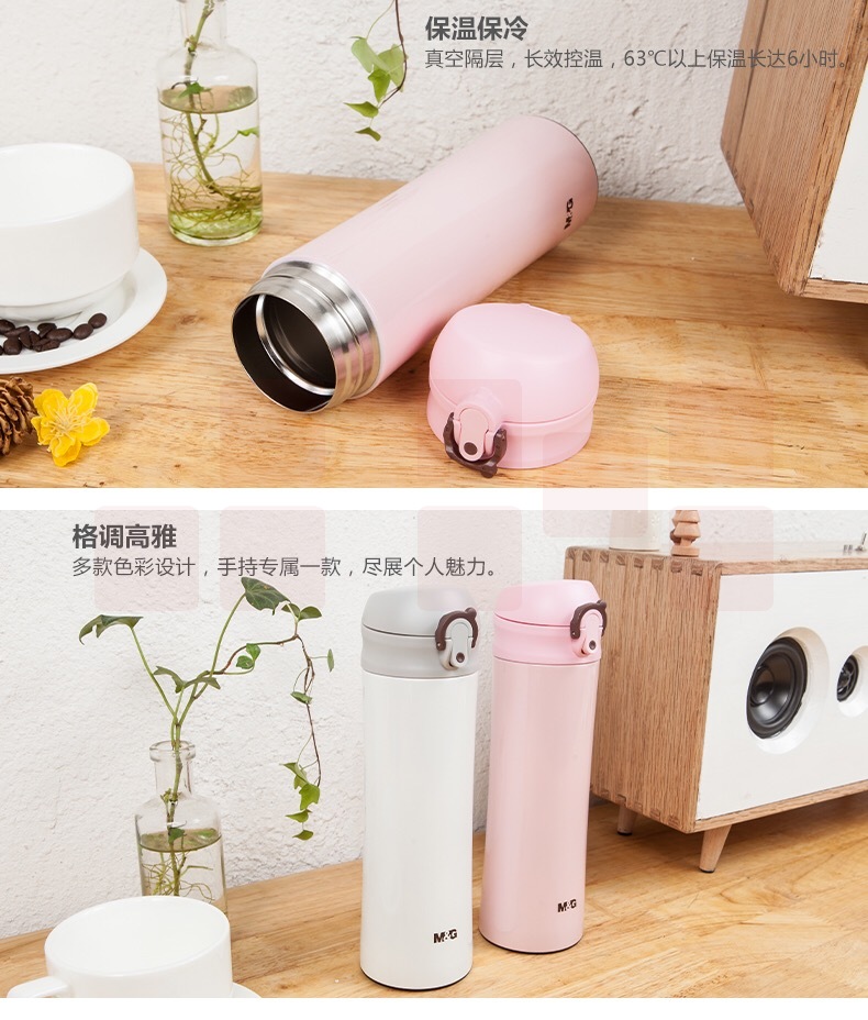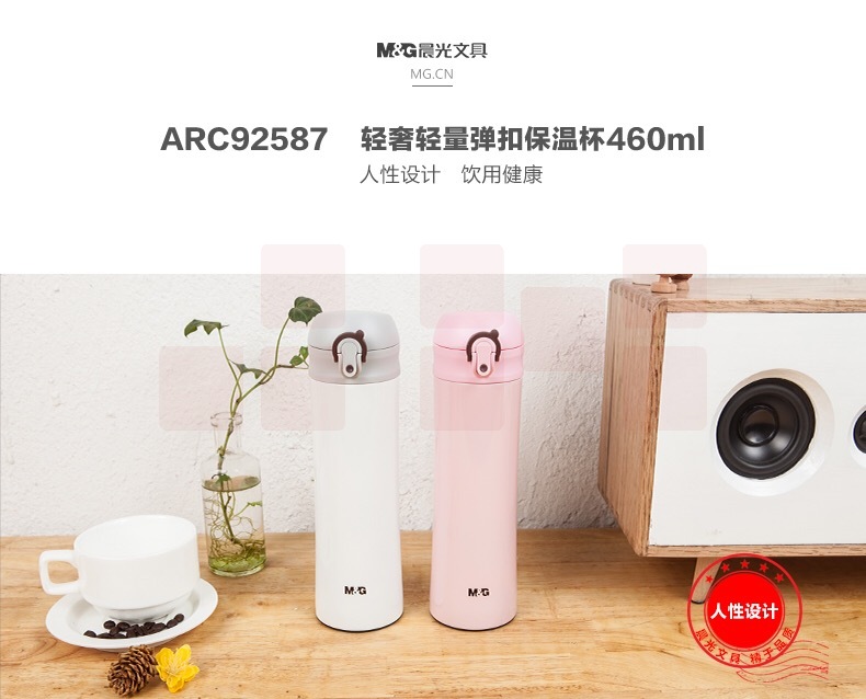 晨光(M&G)轻奢轻量弹扣保温杯460ml大容量商务杯ARC92587白粉蓝颜色随机
