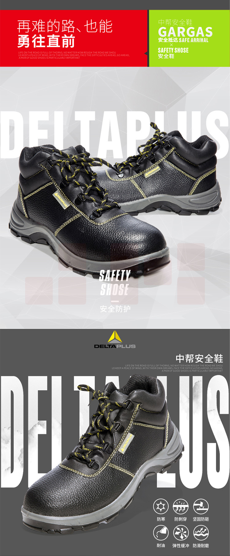 代尔塔 301101 中帮安全鞋防砸防穿刺 防静电防滑耐油