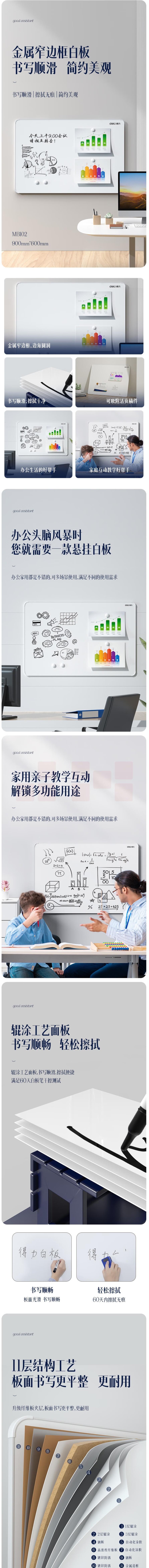 得力90*120cm 悬挂白板 抗菌磁性白板MB103(白)(块)