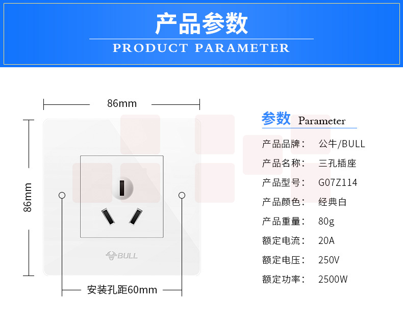 公牛 G06Z104 三孔插座 16A 大功率墙壁插座