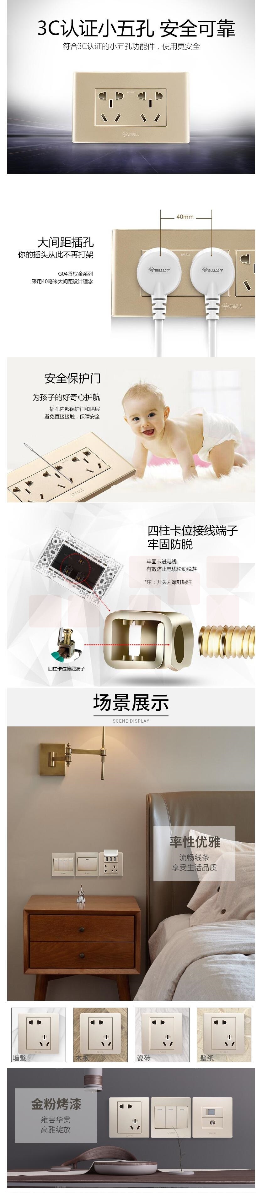 公牛 开关插座面板多孔G04金多位 一开双15孔插座 货号:JC