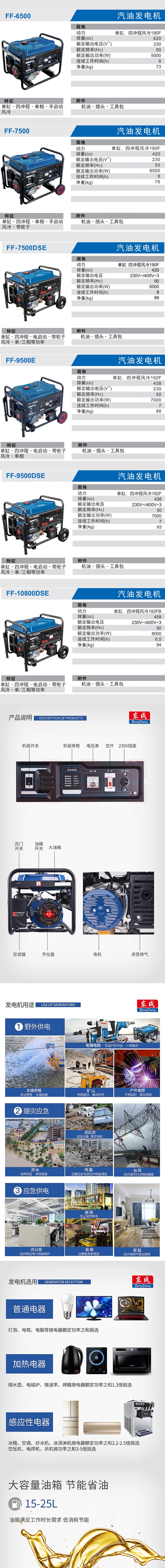 东成 FF-6500 汽油发电机5KW单相230V单缸单相手启动、