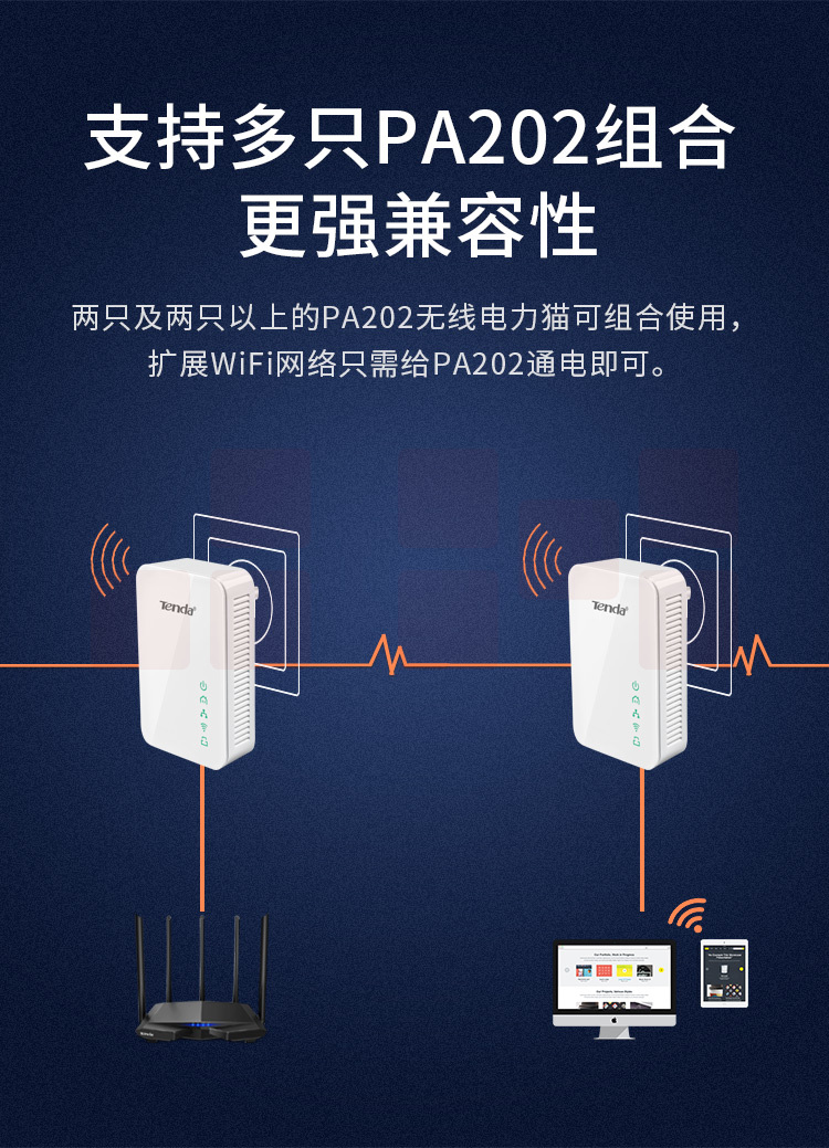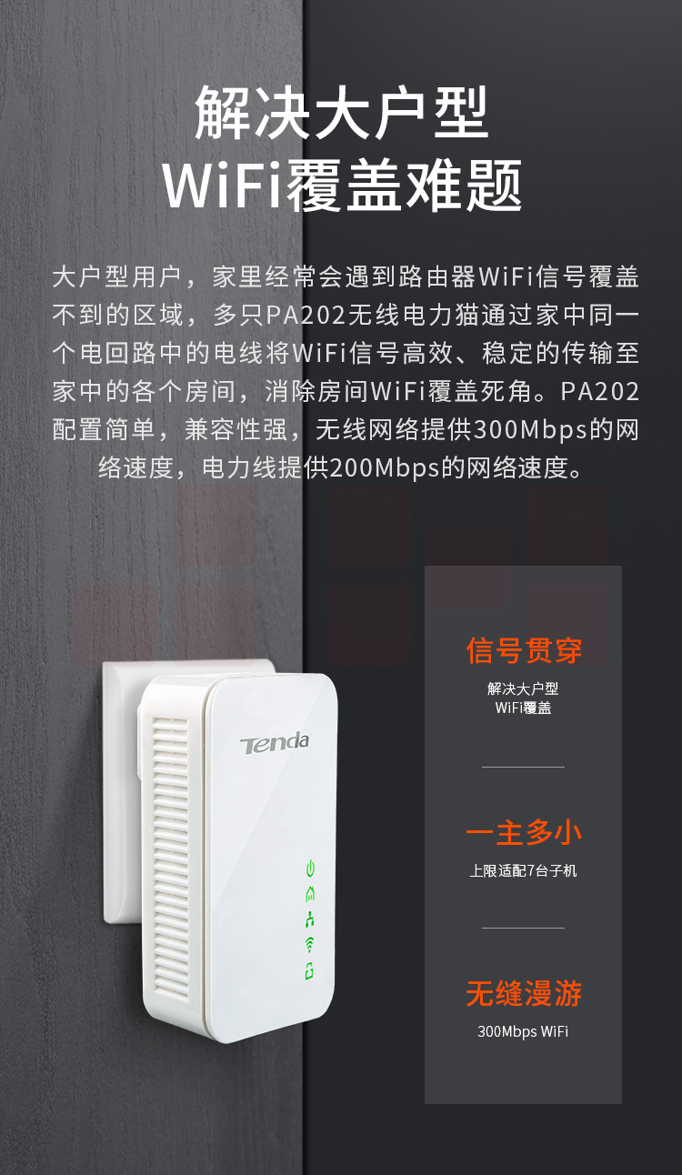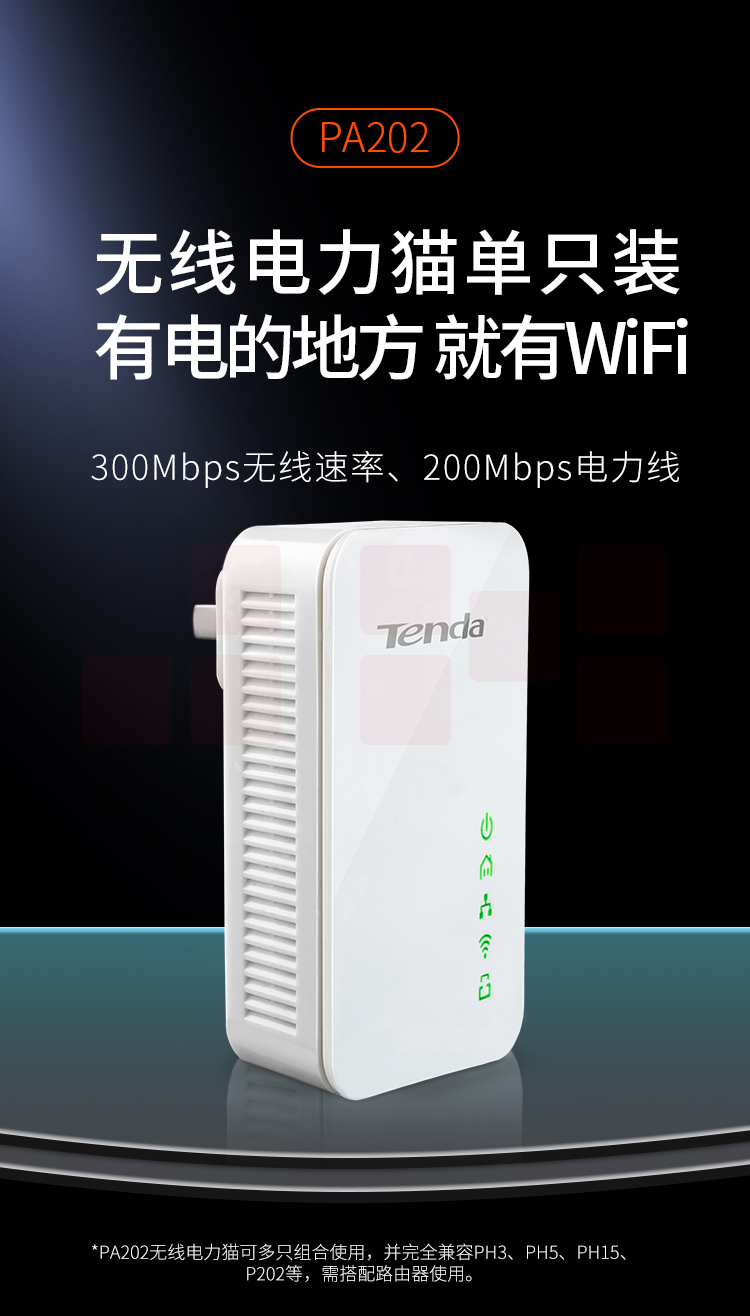 腾达 PA202 300M 无线电力猫穿墙宝 单支装 WIFI信号放大器 无线扩展器 支持IPTV